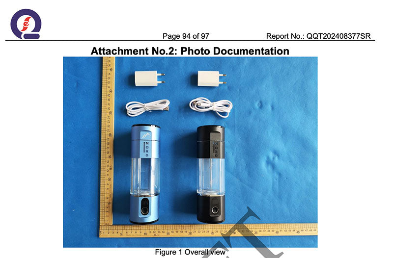 Denne sertifiseringen bekrefter at vår flaske produserer et stabilt og terapeutisk nivå av H₂, uten skadelige biprodukter. En bekreftelse på at du får et produkt som er både effektivt og sikkert å bruke.
